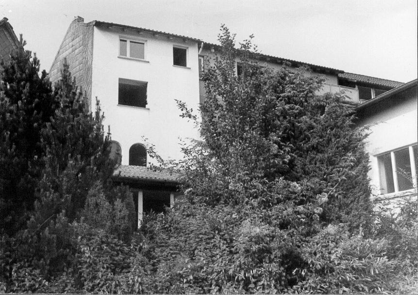 Blick auf das ehemalige Synagogengebäude im Juli 1988, kurz vor dem Abriss. Bis zu diesem Zeitpunkt diente das Gebäude teilweise als Lager der Firma Lambrecht. Quelle: GA B1049