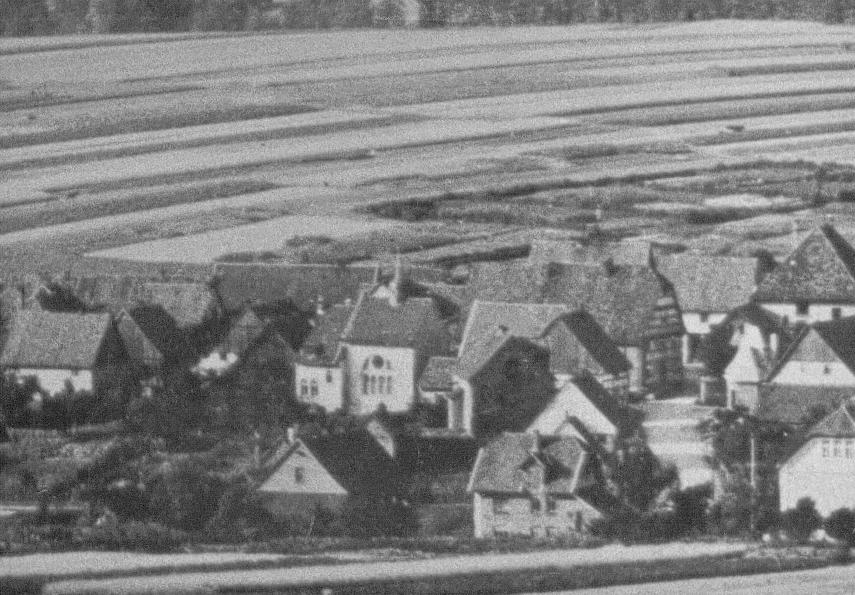 Blick auf Bösingfeld aus südlicher Richtung, Bildmitte Synagoge, ca. 1910-1920