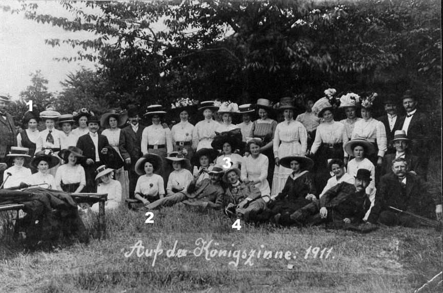 Ausflug zur Königszinne 1911 (1= Ida Schleyer, 2= Hanna Kleeberg, 3= (?) Kleeberg, 4= Willi Kleeberg Quelle: GA B2244
