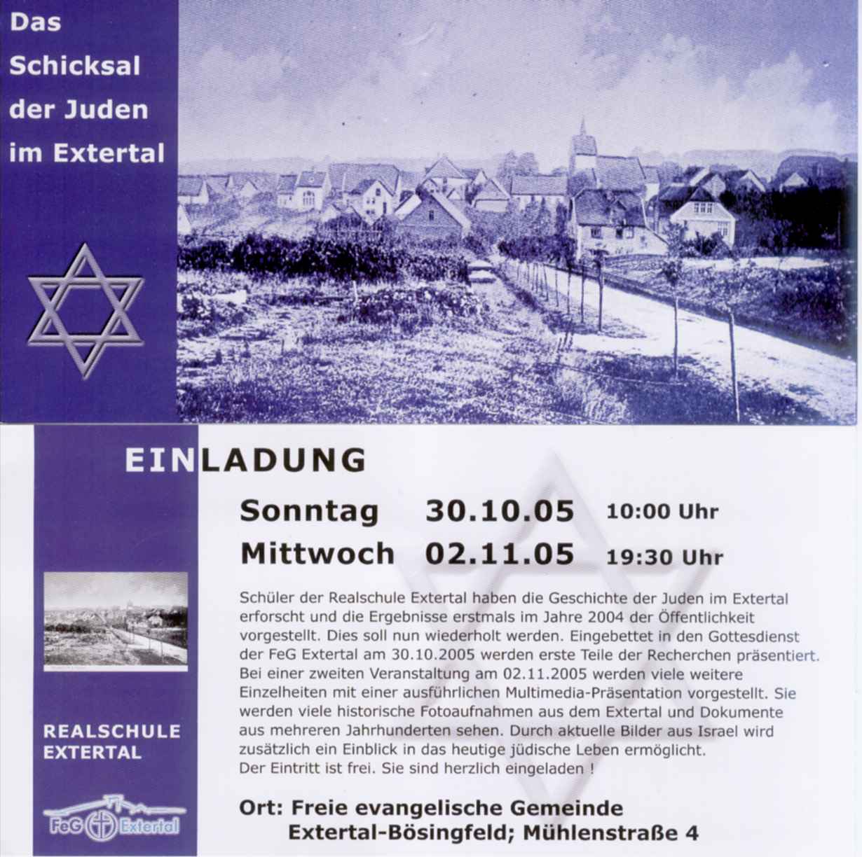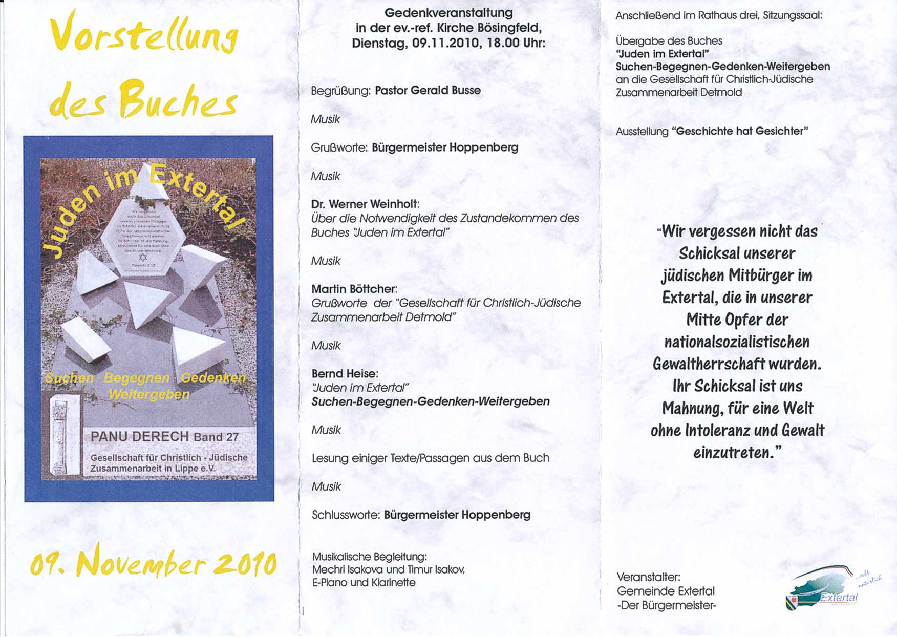 Fleyer zur Gedenkveranstaltung Vorstellung des Buches "Juden im Extertal" (Vorwort, Inhalt) |