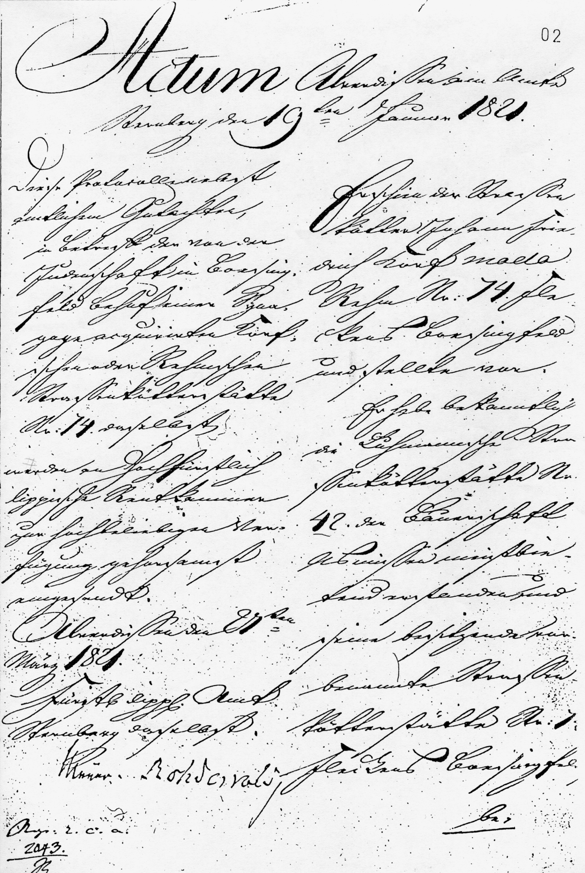Diese Protokolle nebst amtlichen Gutachten, sind betreff den von der Judenschaft in Bösingfeld behuf einer Synagoge acquirierten Korfschen oder Rehmschen Straßenkötterstätte Nr. 74 daselbst werden an Hochfürstliche Lippische Rentkammer zur hochbeliebigen Verfügung gehorsamst angesandt, Alverdissen 27. März 1821