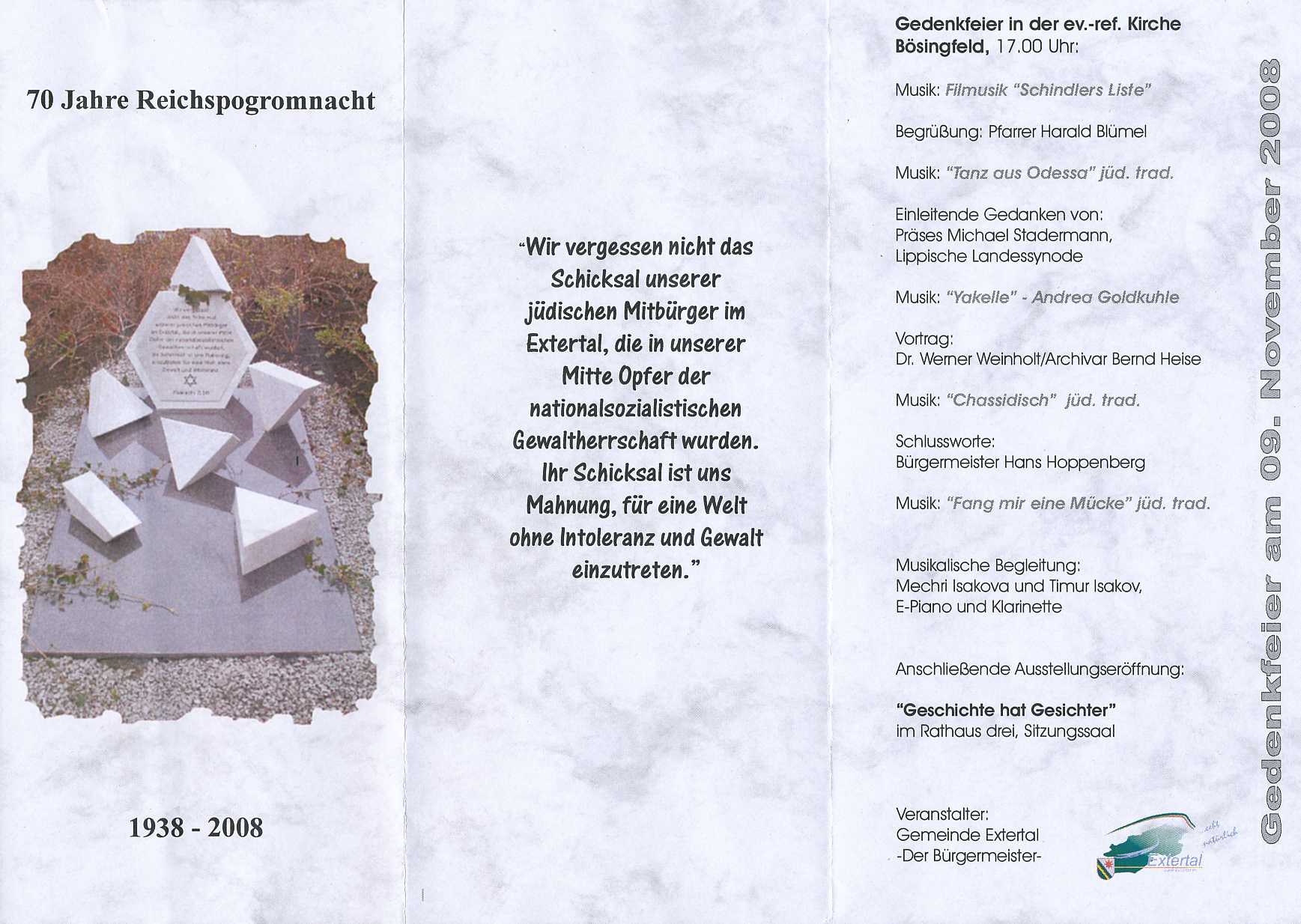 Flyer zur Gedenkfeier "70 Jahre Reichspogromnacht" |